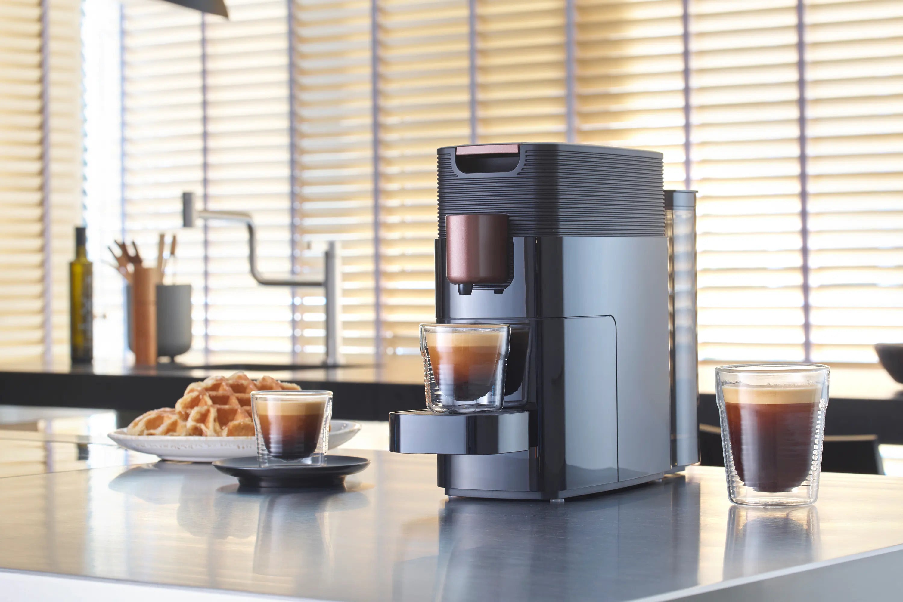 The espresso setting increases the pressure to create an espresso topped with a velvety crema