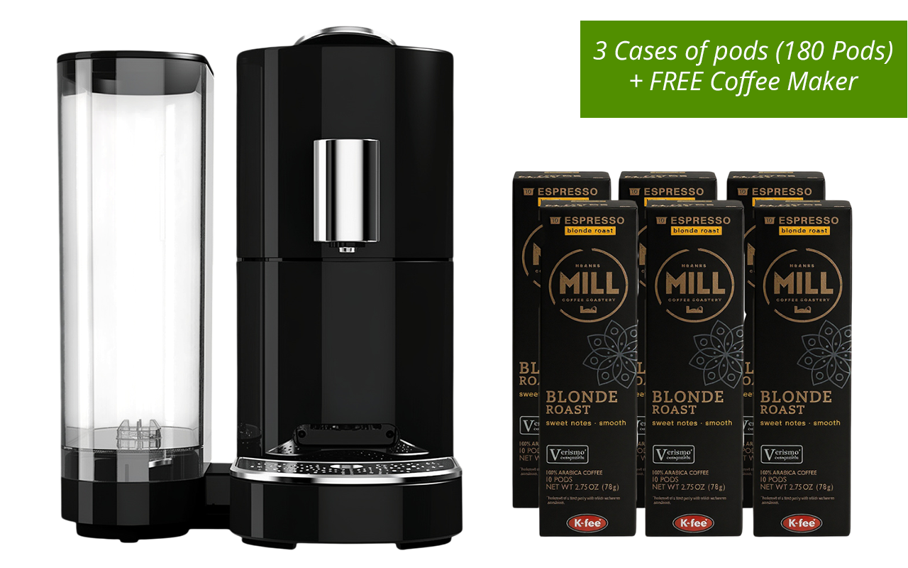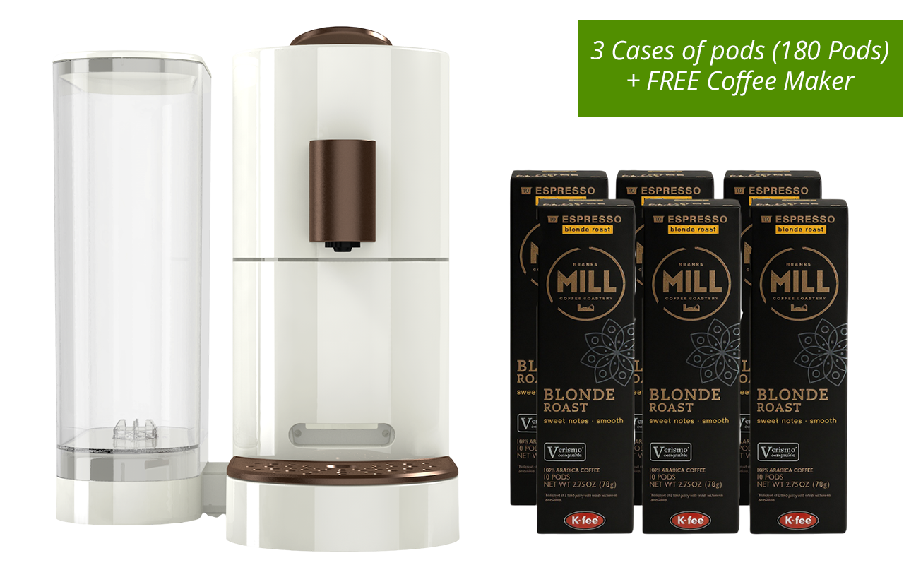 3 Cases of Blonde Roast+ Free Coffee Machine