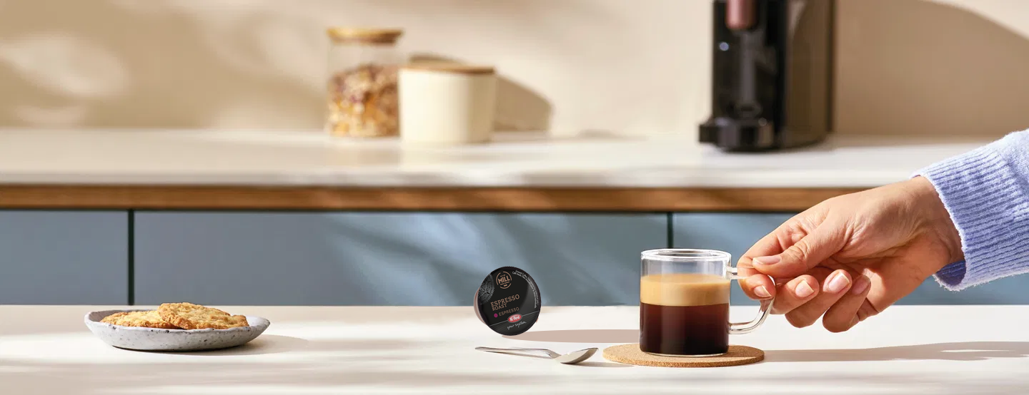 Espresso at the touch of a button. Highest-quality coffee from a capsule.