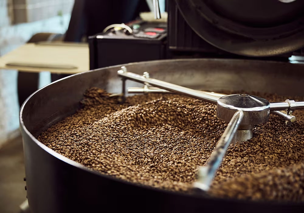 The heat in the drum roaster is gently increased. After about 10 minutes, you’ll hear a noise: Crackles. Pops. This is what’s known as the first crack. The coffee beans are reacting to the heat, and you can hear it. Now the first phase of roasting is completed and the roasting master decides, how much heat and time is still necessary for the desired roast.